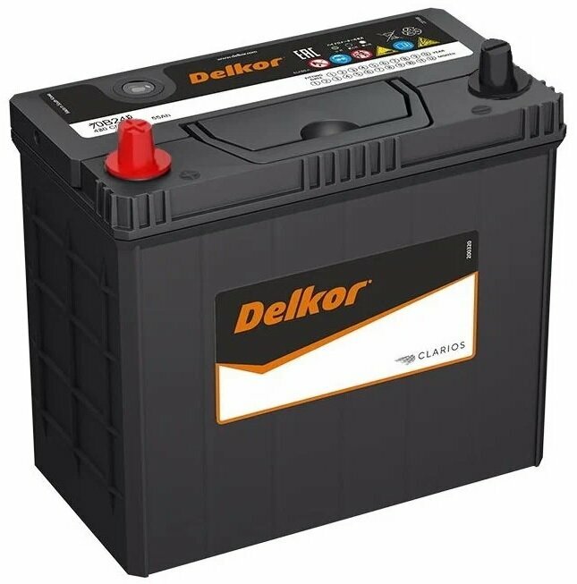 Аккумулятор автомобильный Delkor 70B24R 55 А/ч 480 А прям. пол. тонк. клеммы Азия авто (238х129х227) интересное: