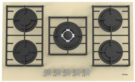 Варочная панель Korting из закаленного стекла, ширина 90 см, 5 высокоэффективных конфорок, сверхмощная конфорка WOK 3,8 кВт, автоматический электроподжиг, газ-контроль каждой конфорки, передние металлические переключатели, чугунные решетки для посуды, в к