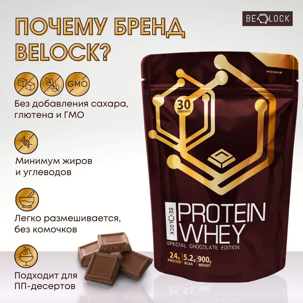 Купить Протеин сывороточный BELOCK, whey protein, протеиновый коктейль без сахара, шоколад, 900 гр, 30 порций