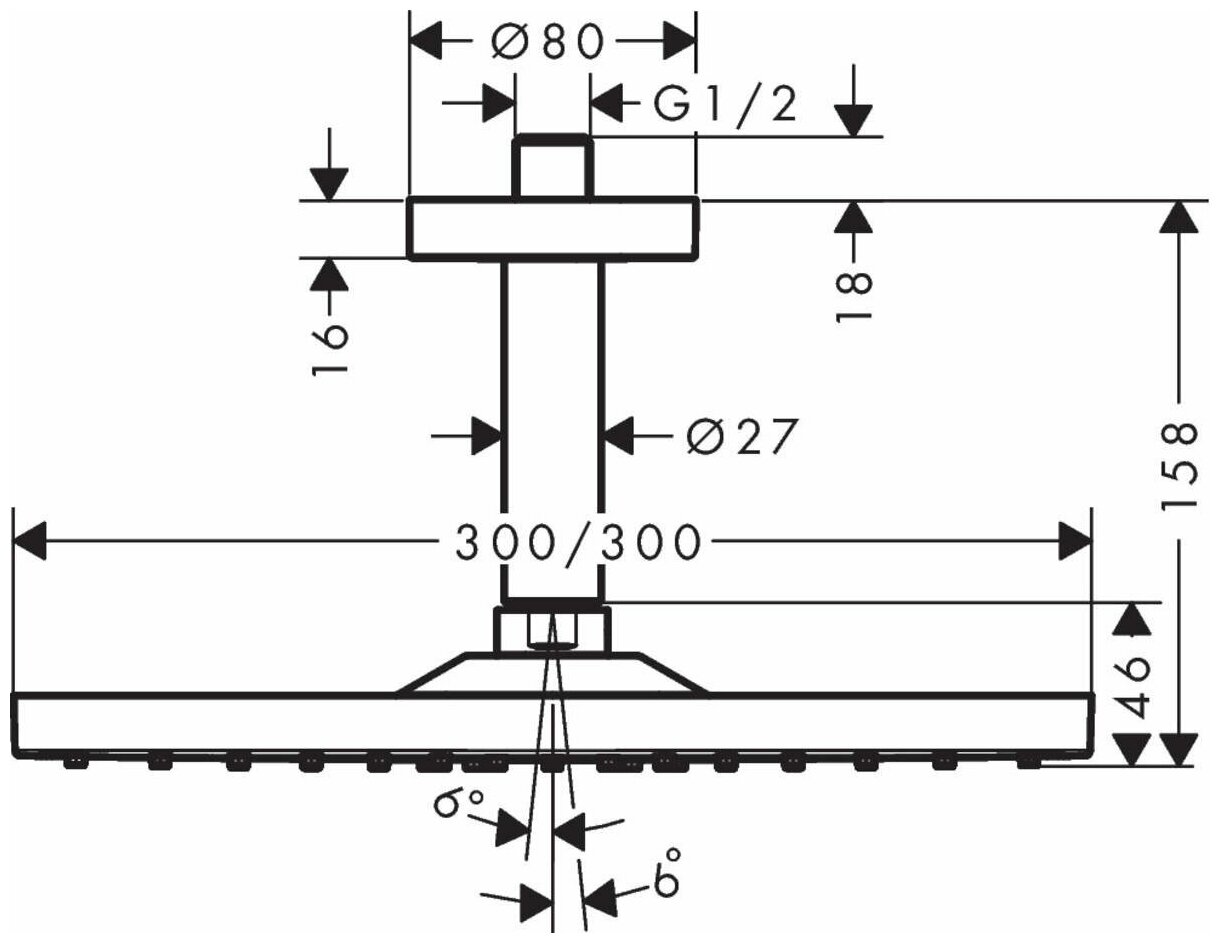 Верхний душ hansgrohe Raindance E 300 1jet EcoSmart с потолочным кронштейном 26251000, хром