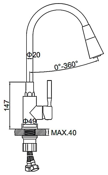 Смеситель для кухни с гибким изливом Ledeme L74199-9 нержавеющая сталь