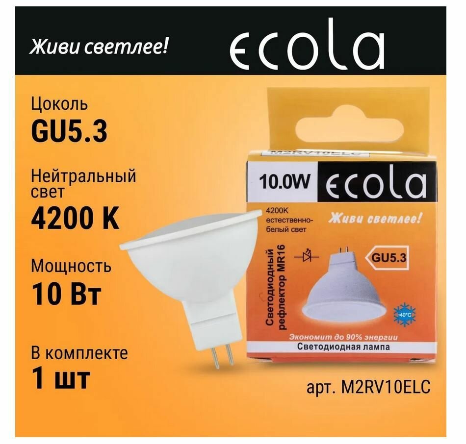 Ecola Mr16 Gu5.3 220V 10W 4200K 4K 51X50 Матов. M2Rv10Elc (арт. 540716) интересное: