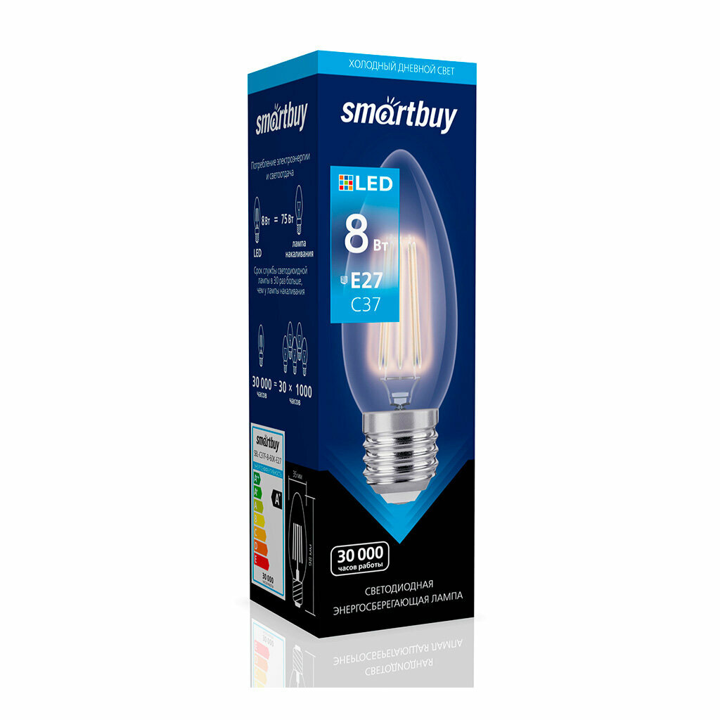 Купить Светодиодная Лампа FIL Smartbuy C37, 8Вт, 6000К, E27