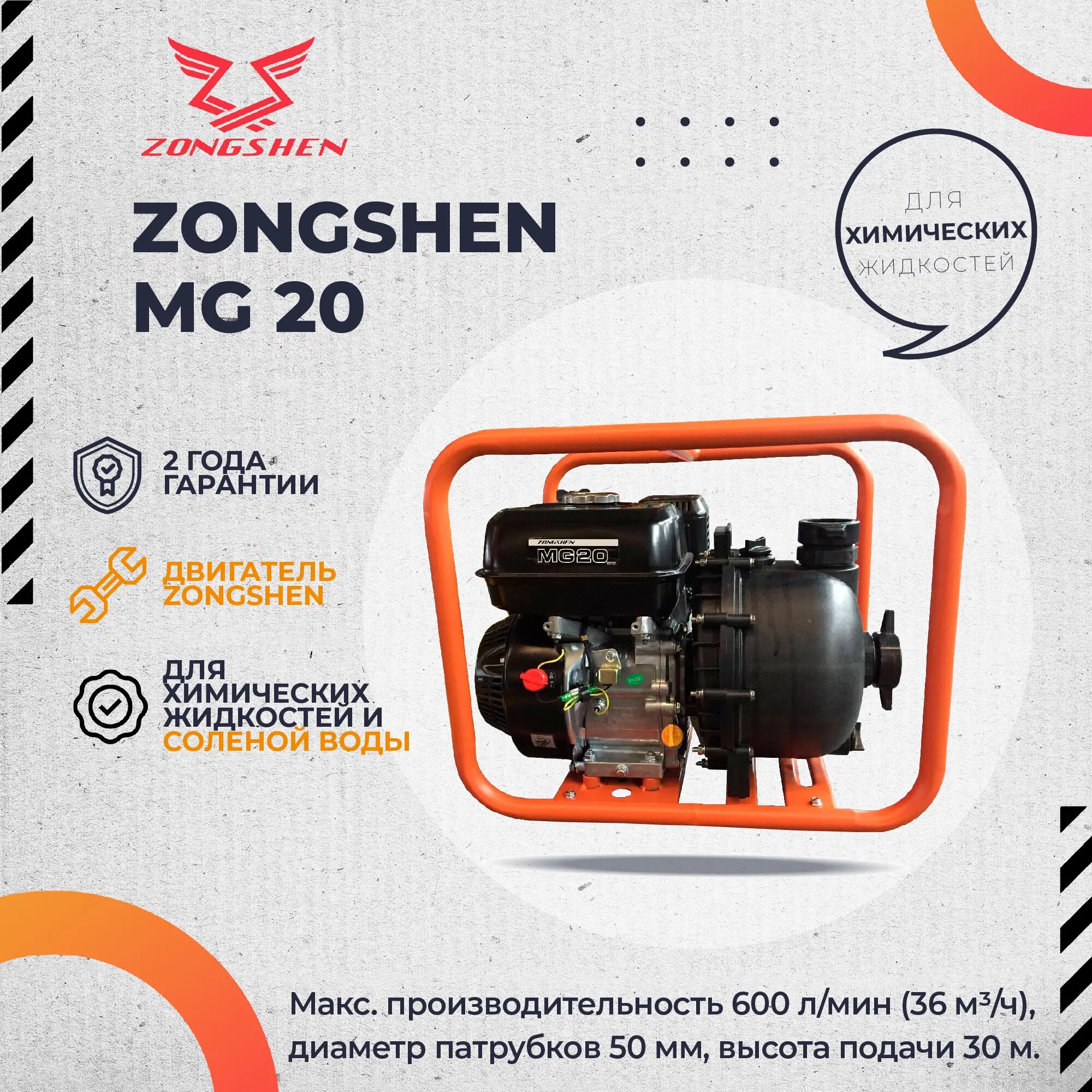 Мотопомпа бензиновая ZONGSHEN MG 20 для химических жидкостей