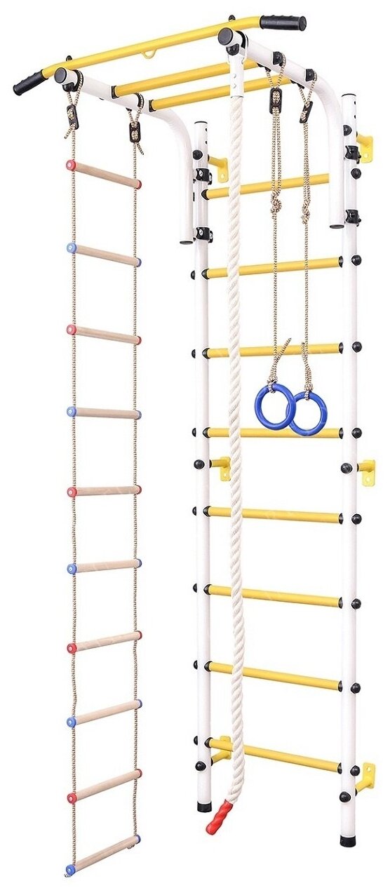 | Подробная комплектация | Шведская стенка. Турник. Канат. Лесенка спортивная. Кольца гимнастические. Хомут - 8 шт. Дюбель пластиковый - 6 шт. Заглушки - 44 шт. Инструкция по установке. |