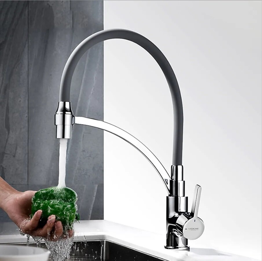 4499-9 Смеситель Кухня LEDEME с силиконовым изливом, (серый/хром)