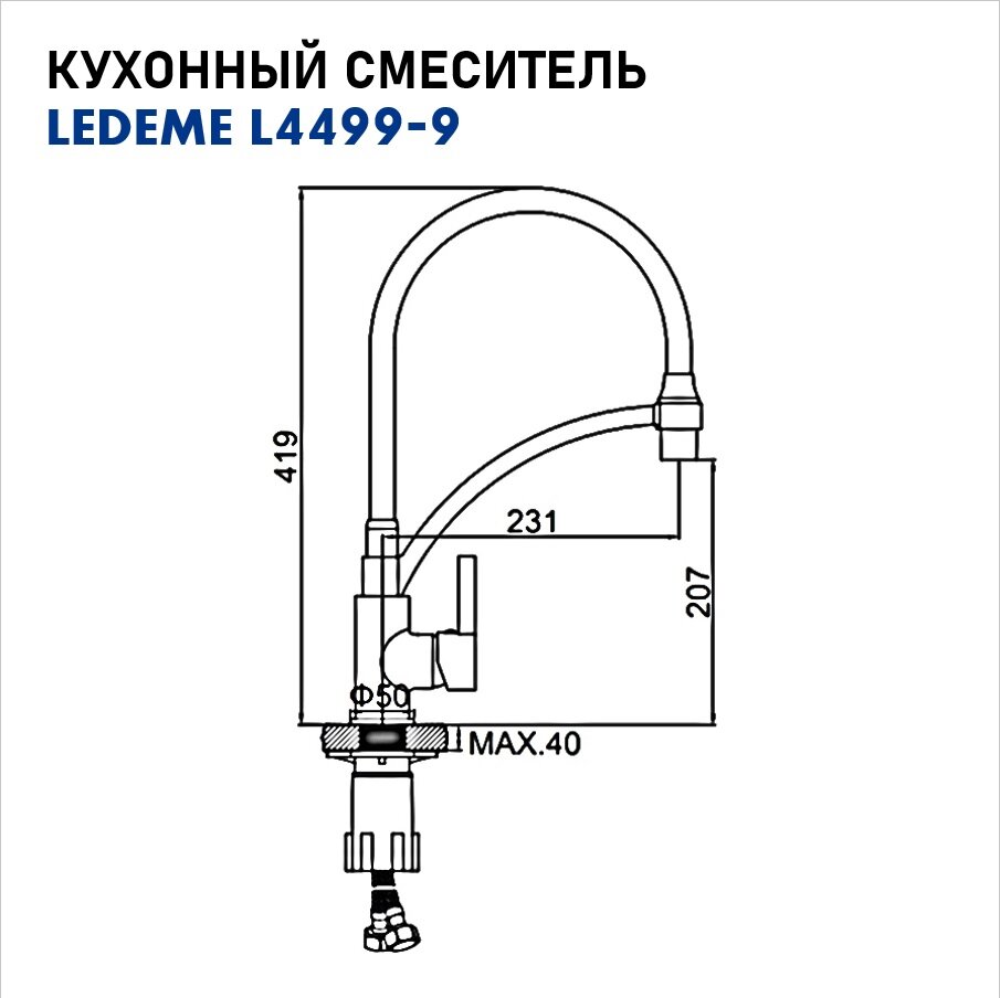Cмеситель для кухни Ledeme L4499-9 интересное: