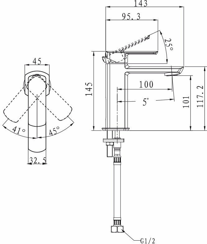 | Длина излива | 101 мм |
