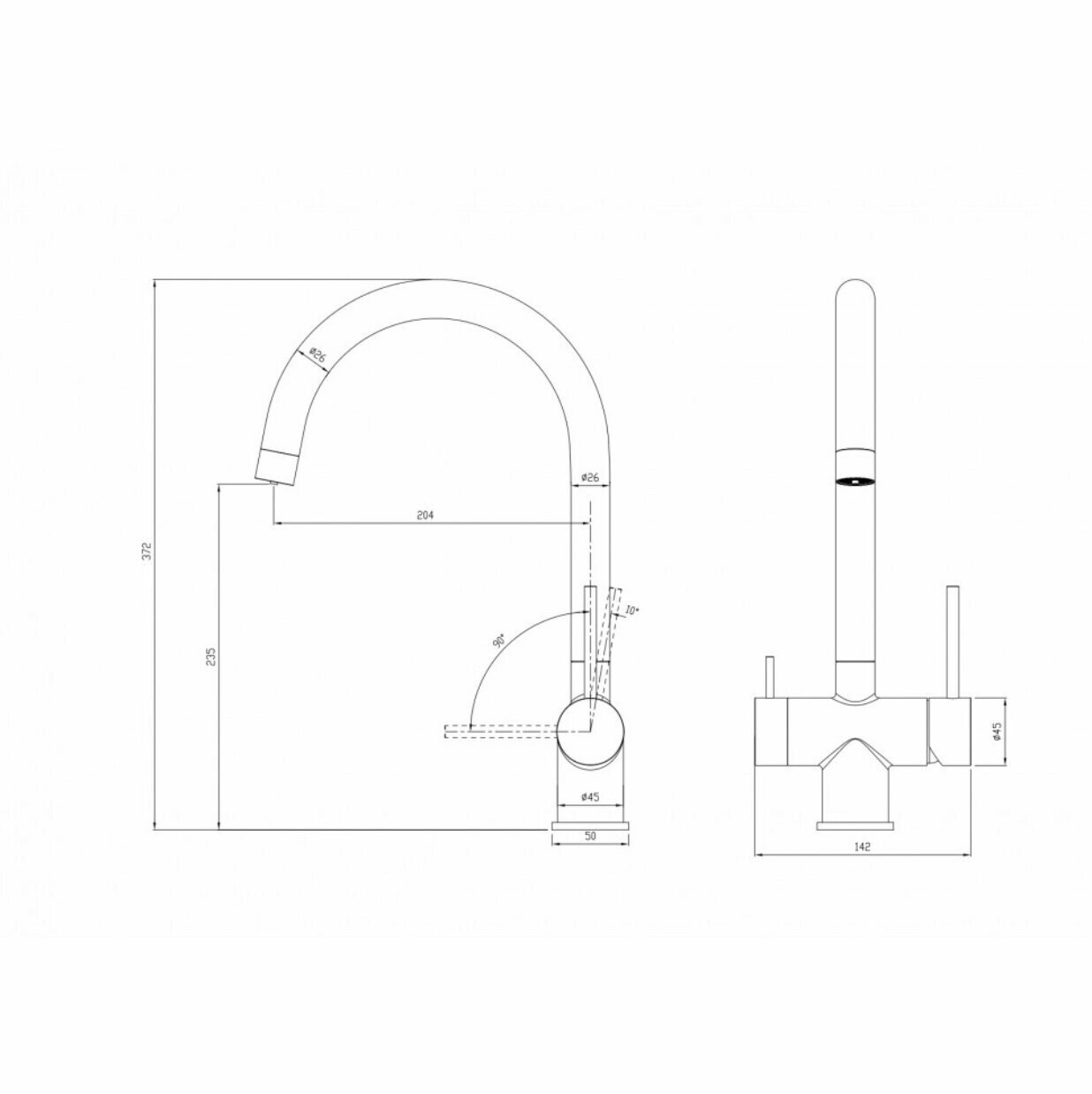 | Длина излива | 204 мм |