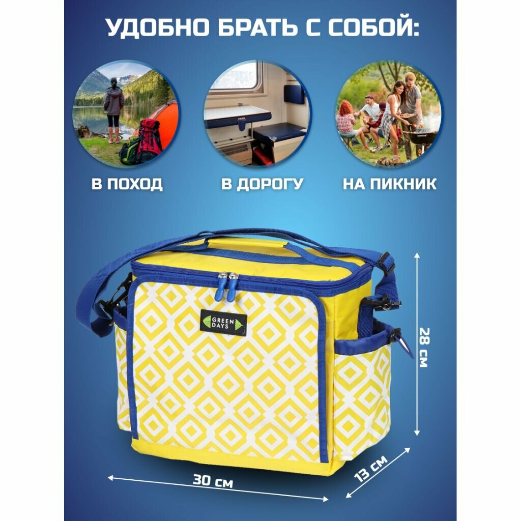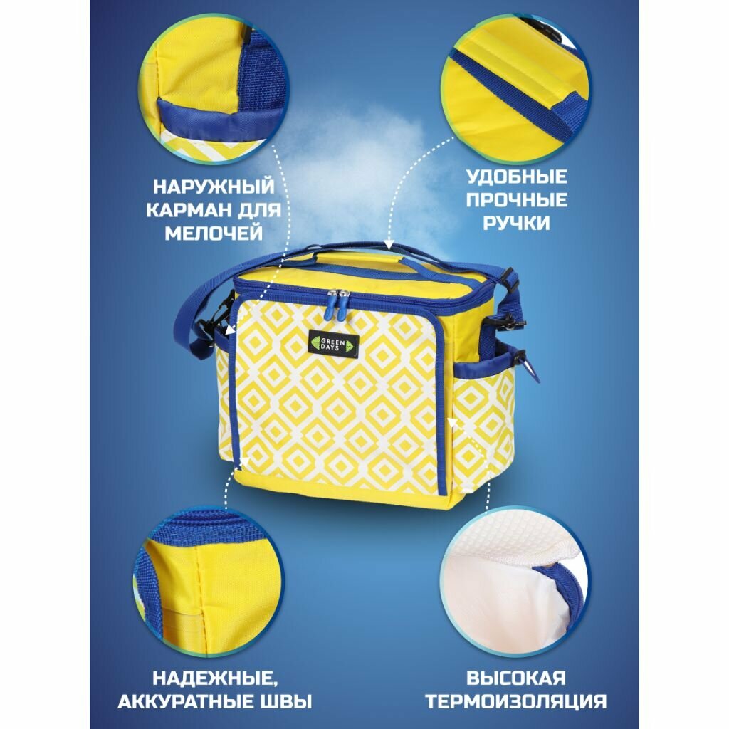 Термосумка 8 л, 30х13х28 см, Green Days, полиэстер, прямоугольная, желтая, с синими ручками, CA210112.01 интересное: