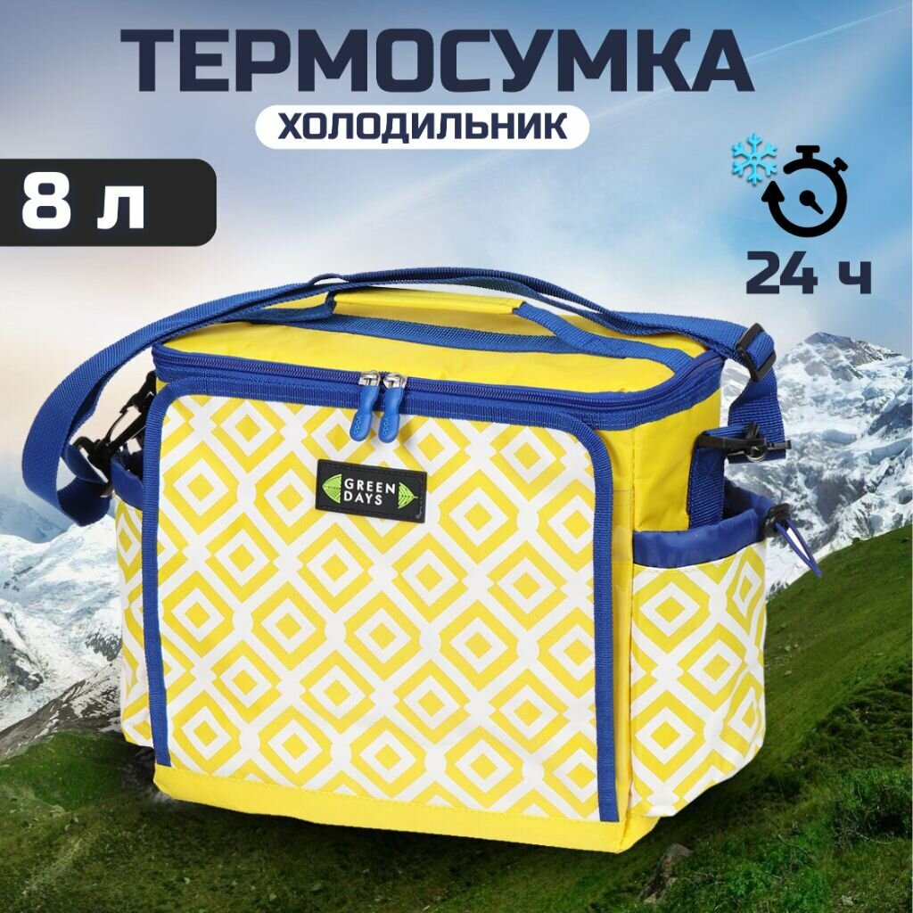 Термосумка 8 л, 30х13х28 см, Green Days, ПЭ, прямоуг, жел, с син ручками, CA210112.01