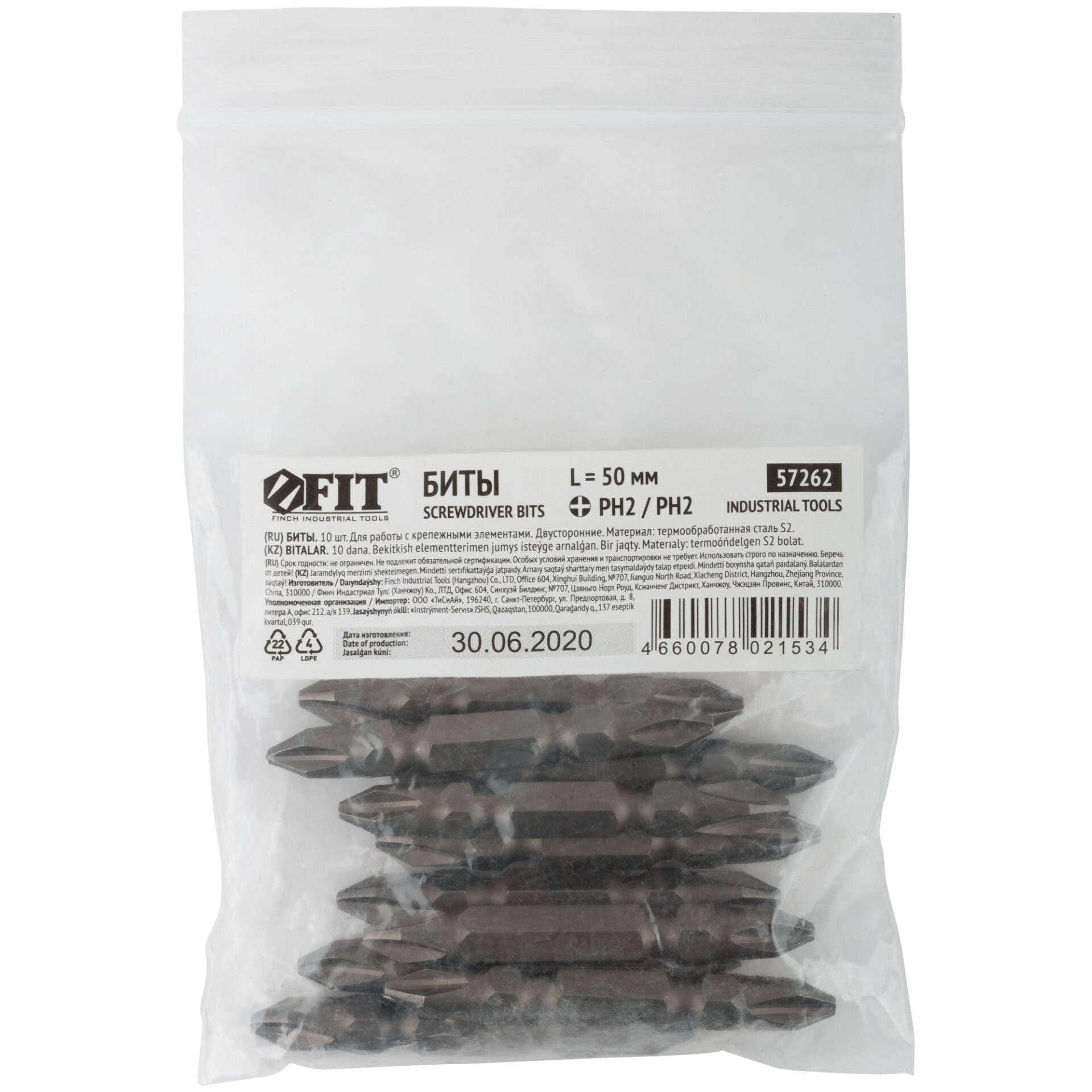 Биты двухсторонние, сталь S2, РН 2 х 50 мм | код 57262 | FIT (10шт.в упак.) интересное: