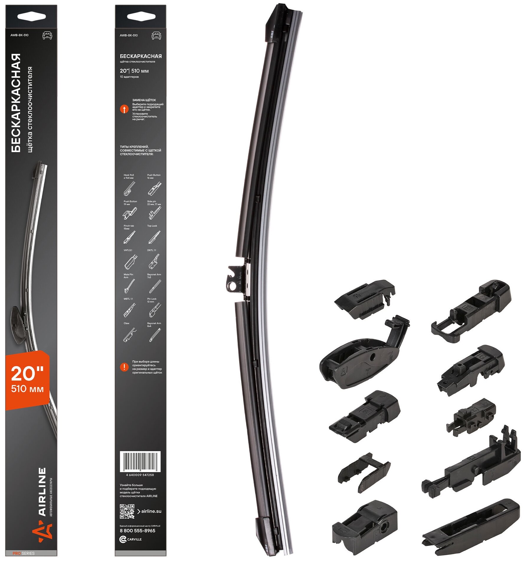 Щётка с/о 510мм (20") бескаркасная, 10 адаптеров airline awbbk510