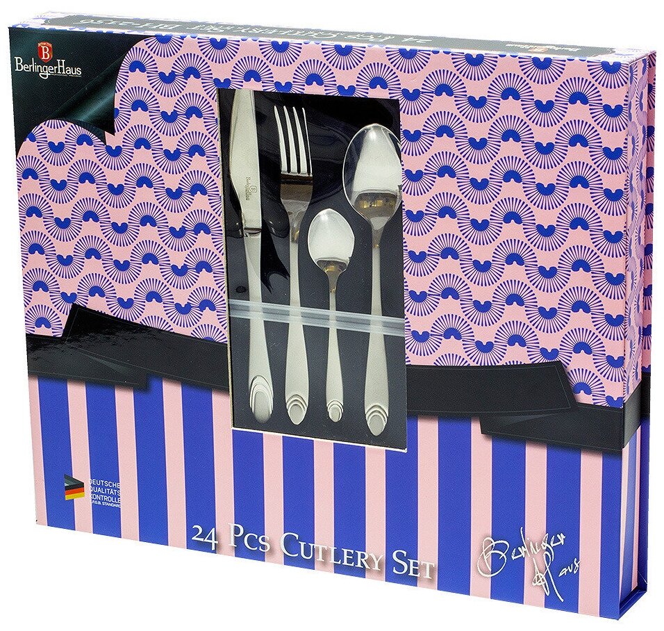 Набор столовых приборов 24 предмета Berlinger Haus Black Royal, 2156-ВН, серебристый, интересное: