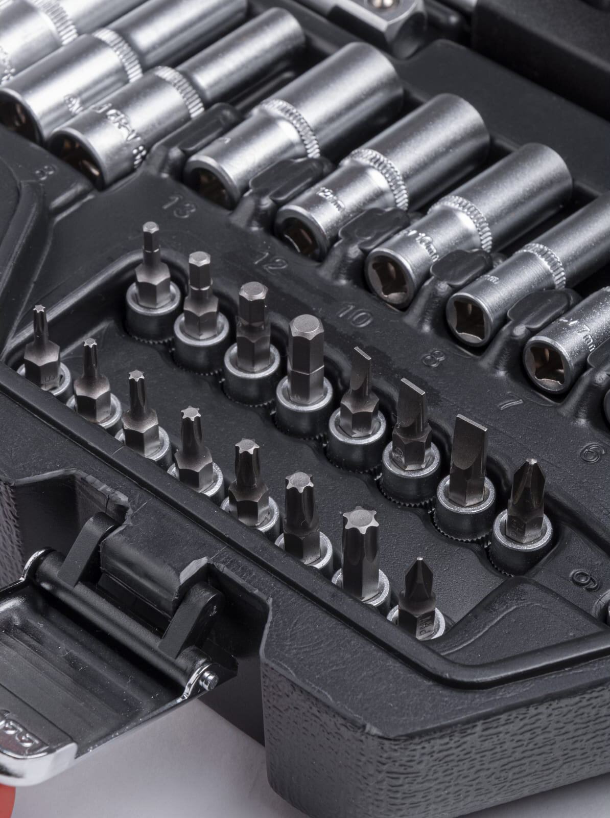 | Дополнительная информация | головка 1/4" 6-гранная 6; 7; 8; 9; 10; 11; 12; 13 мм; головка удлиненная 1/4" 6-гранная 6, 7, 8, 10, 12, 13 мм; трещотка 1/4" 72 зубца, 155 мм; вороток Т-образный 1/4" 115 мм; удлинитель 1/4" 50, 100 мм; отверточная рукоятка1/4" 150 мм; карданный шарнир 1/4" 35 мм; головка 1/4" со вставкой TORX Т8, Т10, Т15, Т20, Т25, Т30, Т40; головка 1/4" со вставкой HEX H3, H4, H5, H6; головка 1/4" со вставкой SLOTTED 4; 5,5; 6,5 мм; головка 1/4" со вставкой PHILLIPS PH1, РН2; адаптер-переходник F 1/4"SQ - 1/4"HEX 25 мм; бита 1/4" TORX Т10, Т15, Т20, Т25, Т27, Т30; бита 1/4" POZIDRIV PZ1, PZ2, PZ3; Бита 1/4" PHILLIPS РН0, PH1, PH2, PH3; бита 1/4" SLOTTED 6, 8, 8, 10; бита 1/4" ROBERTSON S1, S2, S3; головка 3/8" 6-гранная 10, 11, 12, 13, 14, 15, 16, 17, 18 мм; головка удлиненная 3/8" 6-гранная 8, 10, 12, 13, 14, 15 мм; головка 3/8" Е-типа Е8, Е10, E11, Е12, Е14, Е16; головка свечная 3/8" 12-гранная с магнитом 14 мм; трещотка 3/8" 72 зубца, 205 мм; вороток Т-образный 3/8" 200 мм; удлинитель 3/8" 150, 250 мм; карданный шарнир 3/8" 50 мм; адаптер F 3/8" - M 1/4" 23 мм; держатель бит 3/8" - 5/16" 30мм; бита 5/16" TORX T20; T30; T40; T45; T50; T55; бита 5/16" HEX Н6; Н7; Н8; H10; H12; бита 5/16" SLOTTED 5,5; 6,5 мм; бита 5/16" PHILLIPS PH1, PH2, PH3; головка 1/2" 6-гранная 14, 15, 16, 17, 18, 19, 20, 21, 22, 24, 27, 30, 32 мм; головка удлиненная 1/2" 6-гранная 17, 18, 19, 22 мм; головка 1/2" ударная 17, 19, 21, 22 мм; головка свечная 1/2" 16, 21 мм; трещотка 1/2" 72 зубца, 255 мм; вороток Г-образный 1/2" 260 мм; удлинитель 1/2" 125, 250 мм; карданный шарнир 1/2" 70 мм; адаптер скользящий F 3/8" - M 1/2" 42 мм; адаптер F 1/2" - M 3/8" 42 мм; ключ комбинированный 8, 10, 12, 13, 14, 15, 16, 17, 18, 19 мм; отвертка PHILLIPS РН2x100 мм; отвертка SLOTTED 6,0х100 мм; |