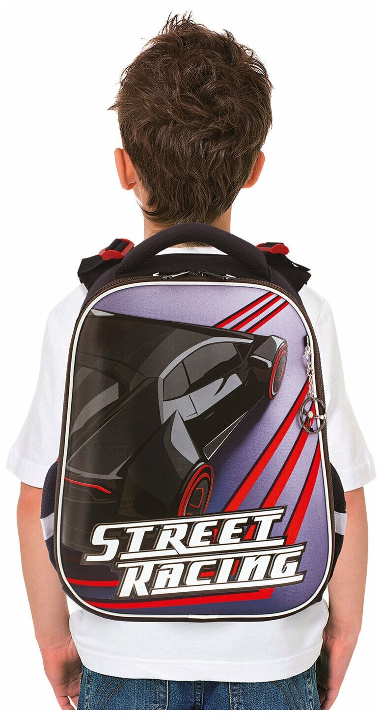 Ранец BRAUBERG PREMIUM, 2 отделения, с брелком, "Street racing", 38х29х16 см, 229904 интересное: