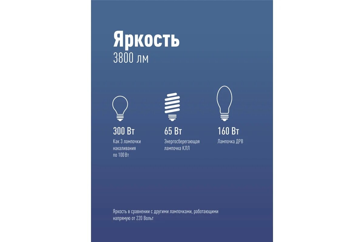 | Дополнительная информация | класс энергоэффективности A, угол светового пучка 270, переходник с E27 на E40 в комплекте |