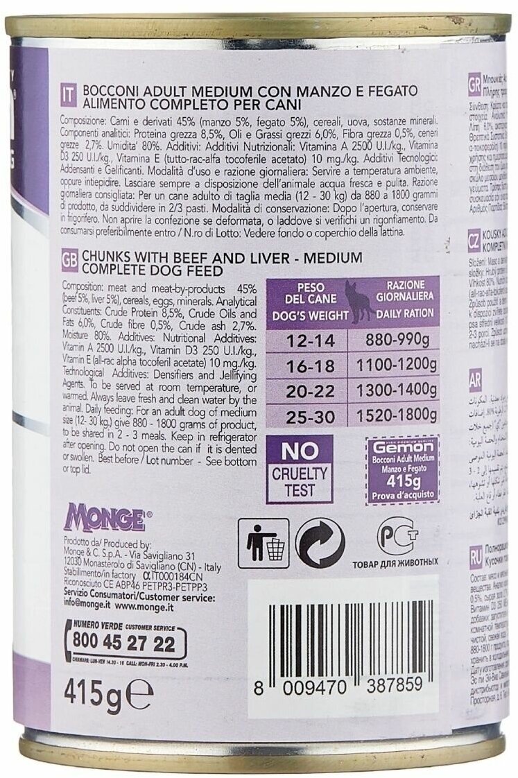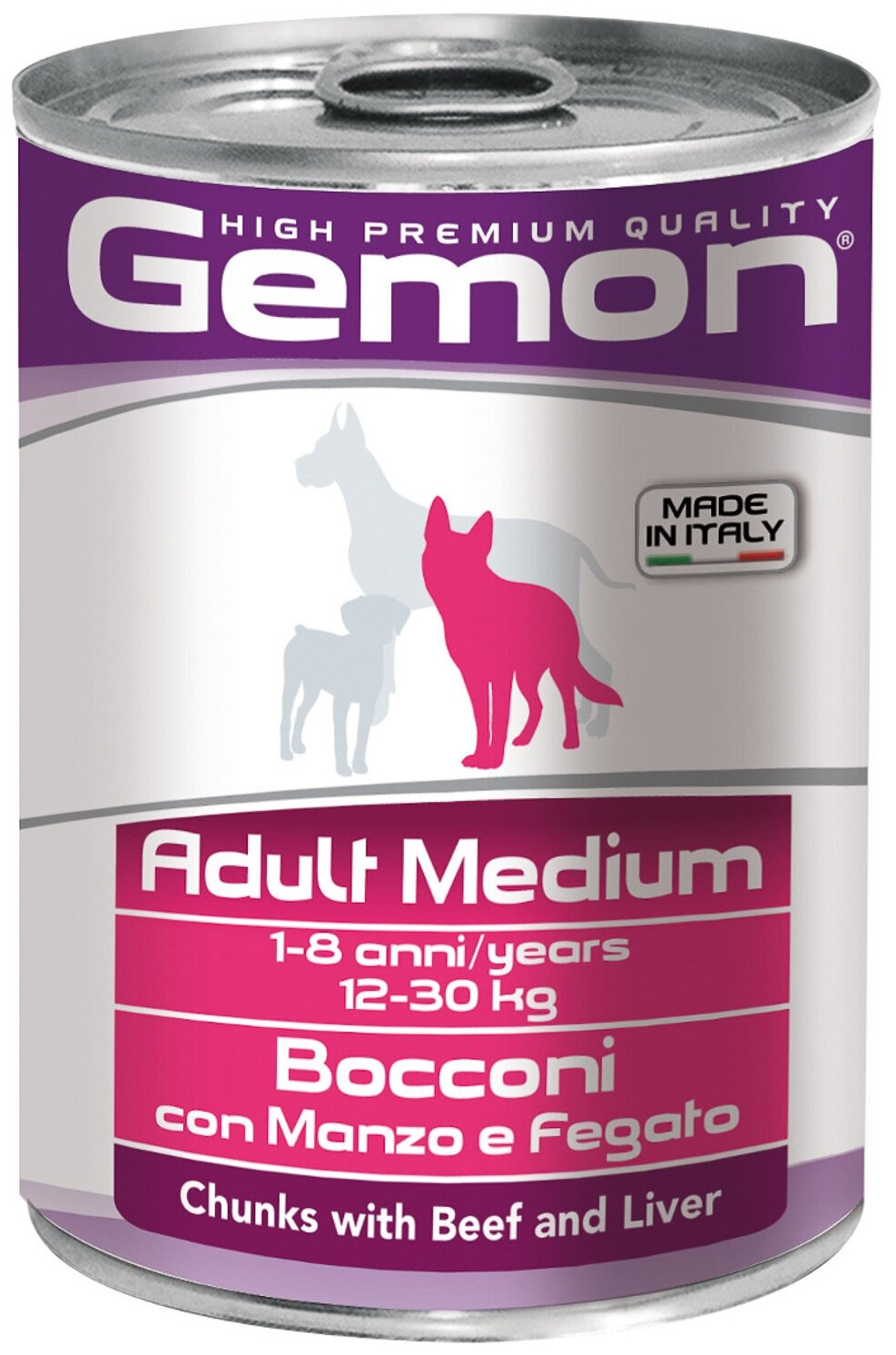 Корм Gemon Dog Medium консервы для собак средних пород кусочки говядины с печенью, 415 г x 12 шт