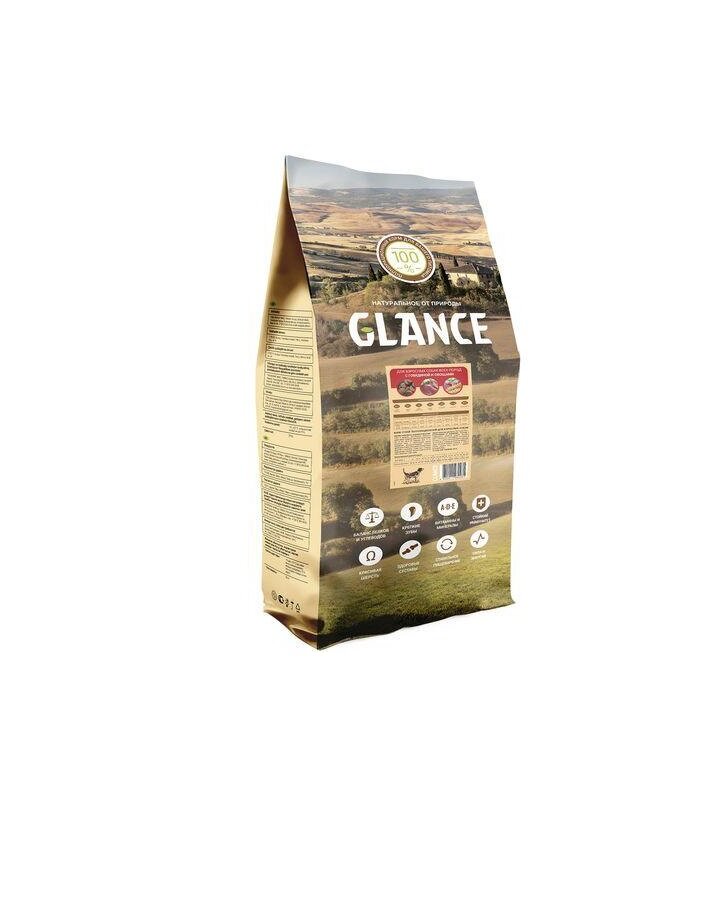 GLANCE Корм сух. д/собак, с говядиной и овощами, 20 кг