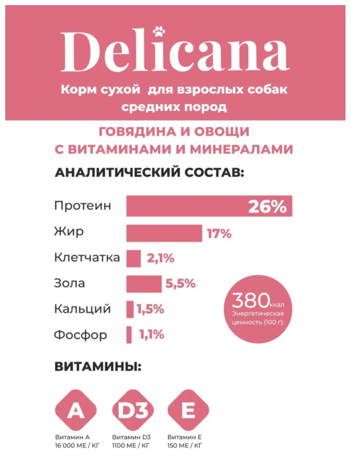 Delicana сухой корм для собак средних пород, говядина с овощами 15 кг. интересное:
