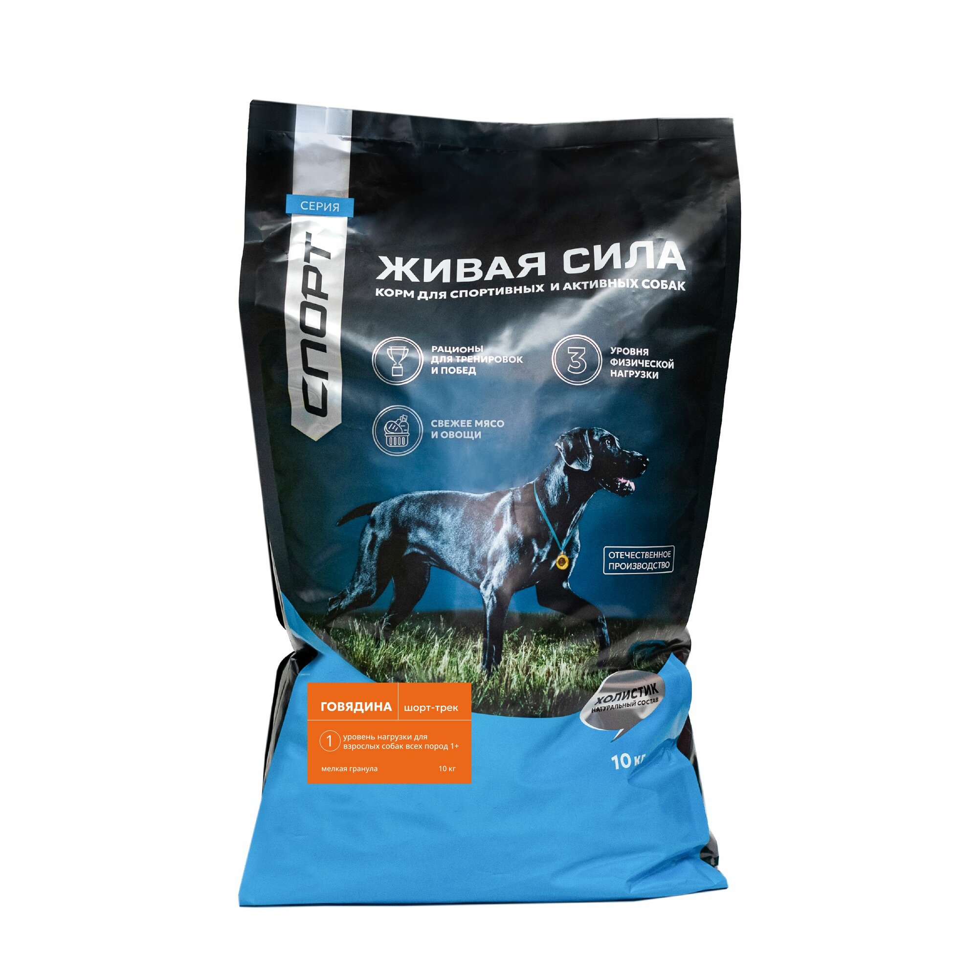 Живая Сила Спорт. Сухой корм для взрослых собак "Шорт-Трек" с говядиной, мелкая гранула 10 кг