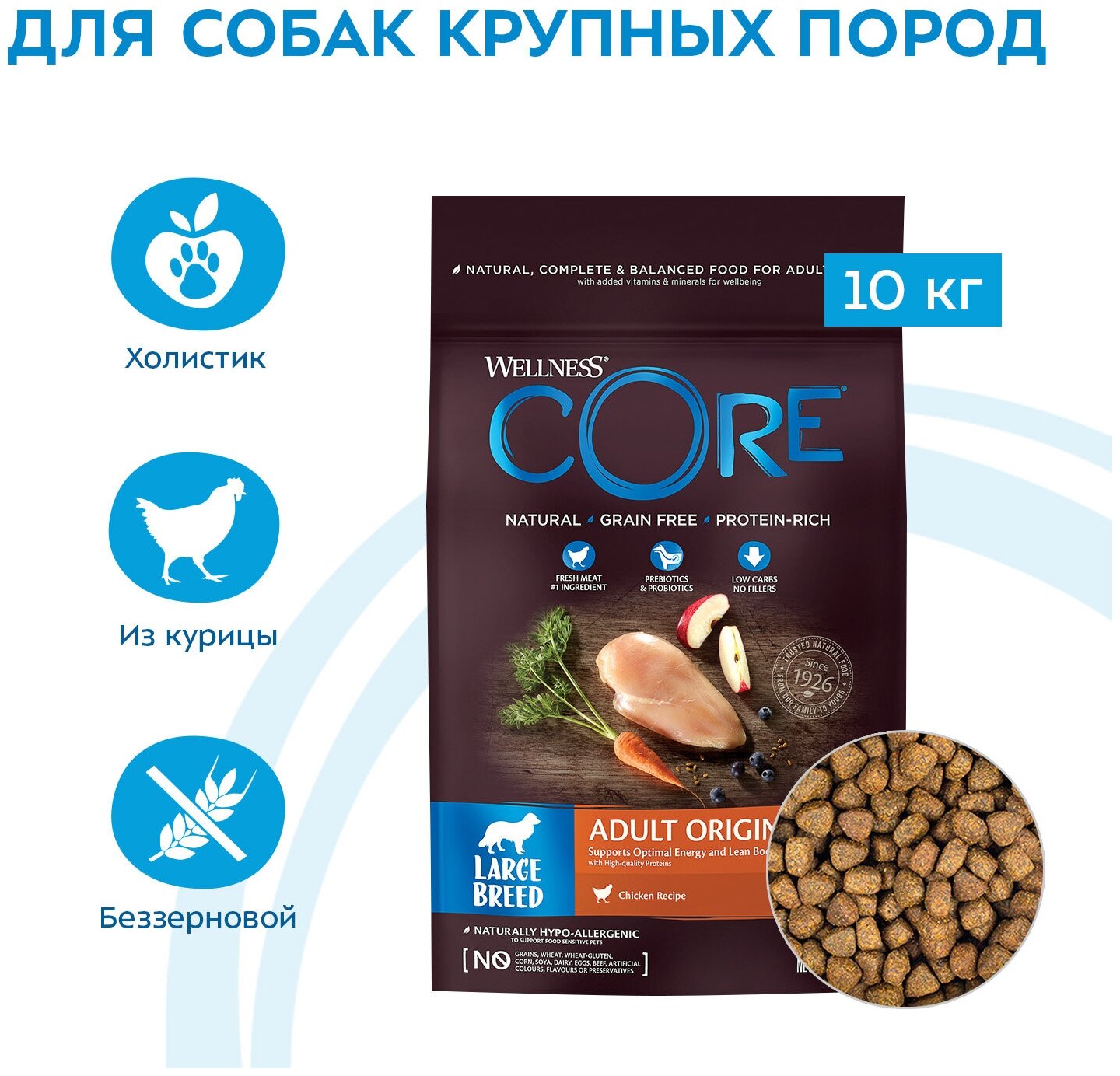 Сухой корм CORE для взрослых собак крупных пород, из курицы 10 кг интересное: