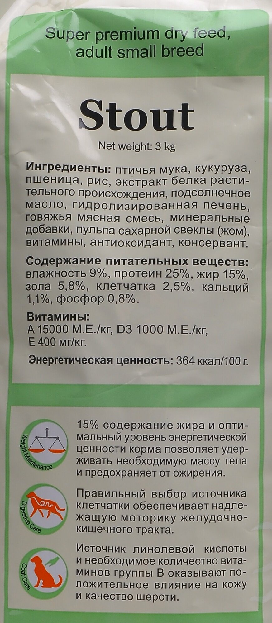 Стаут Для Взрослых собак Малых пород 3 кг 12666 (1 шт) интересное: