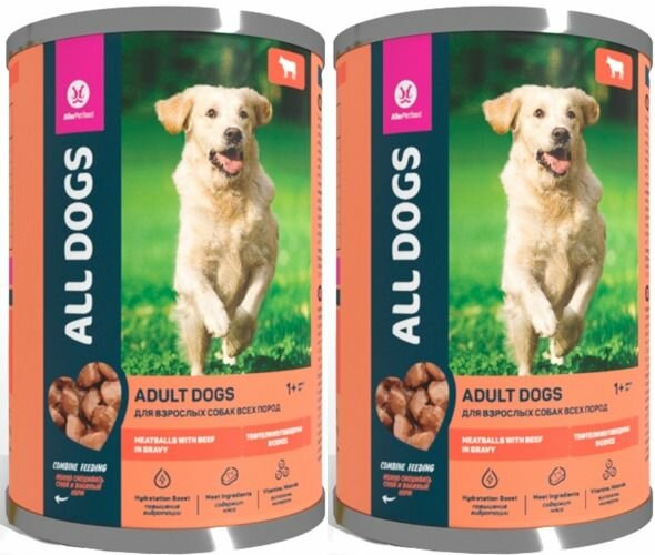 Купить All Dogs Корм консервированный для собак тефтельки с говядиной в соусе банка 10 AL 914 0,415 кг 49049 (2 шт)