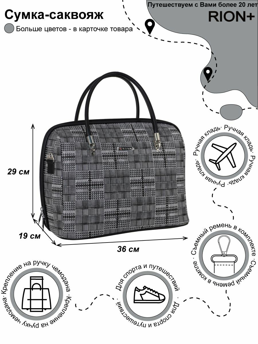 Дорожная сумка с ремнем на ручку чемодана Рион+ (RION+) / ручная кладь для самолета / саквояж , R240, Тканевая, 20 литров, серный-168