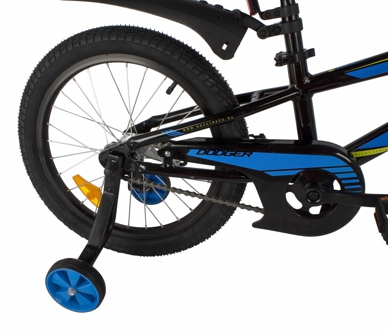 Велосипед NOVATRACK DODGER 18" (2022) (Велосипед NOVATRACK 18" DODGER алюм.,чёрный, тормоз нож, короткие крылья, защита цепи А-тип)