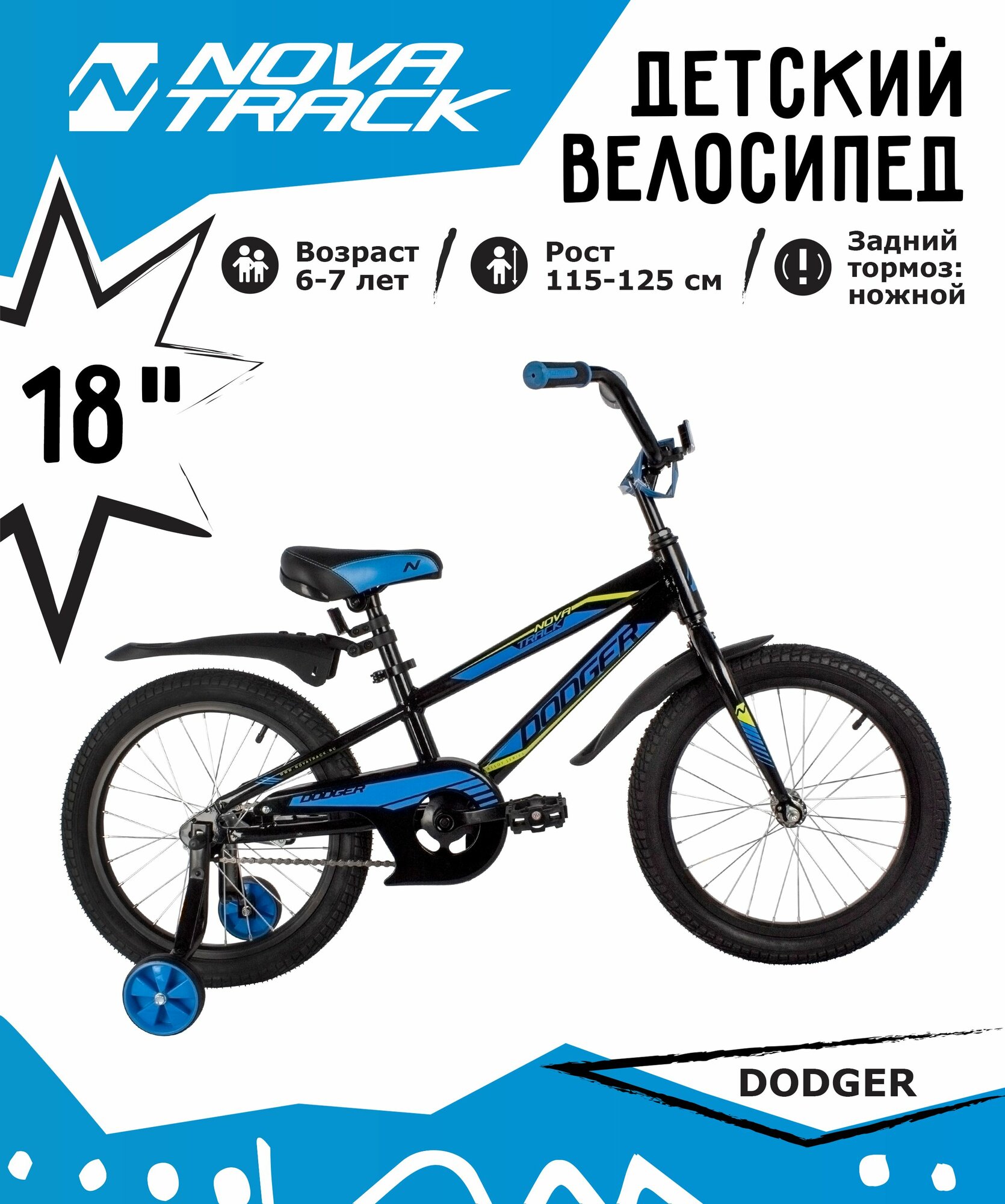 Велосипед детский Novatrack Dodger 18 (2022) чёрный 153771 (185ADODGER.BK22)