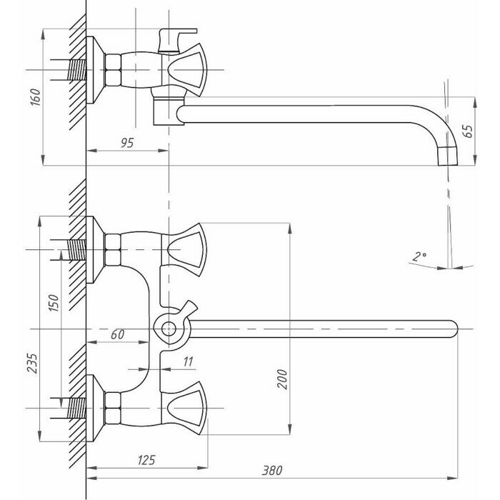 | Комплектация | смеситель, эксцентрики, отражатели, держатель для лейки на смеситель, гибкий шланг, лейка для душа |