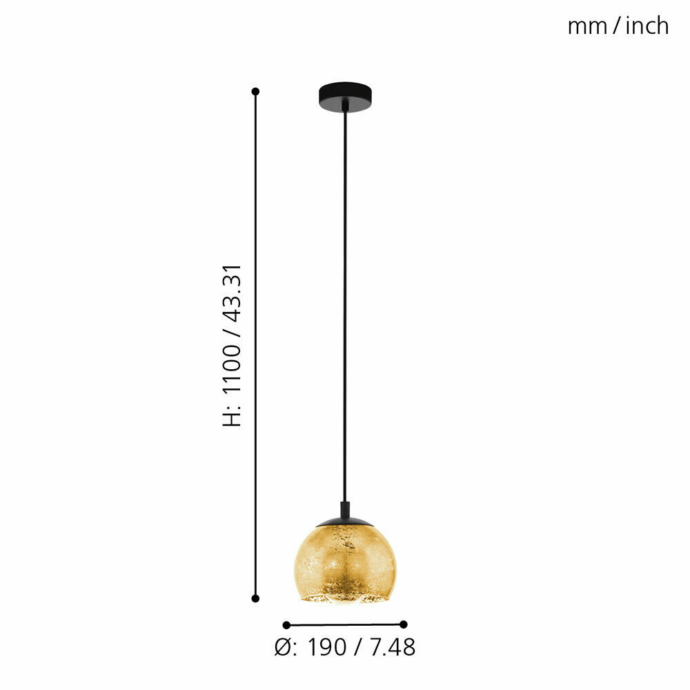 98524 Подвес ALBARACCIN, 1х40W(E27), сталь, черный/стекло, золотистый