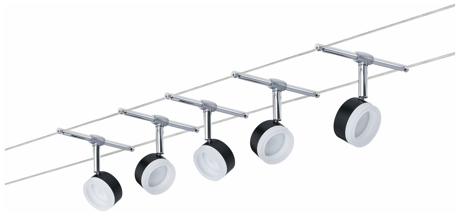 Купить Светильник струнный Paulmann ClearLED 4Вт 150лм 2700К LED 230/12В Черный/Хром Набор 5 спотов 94457