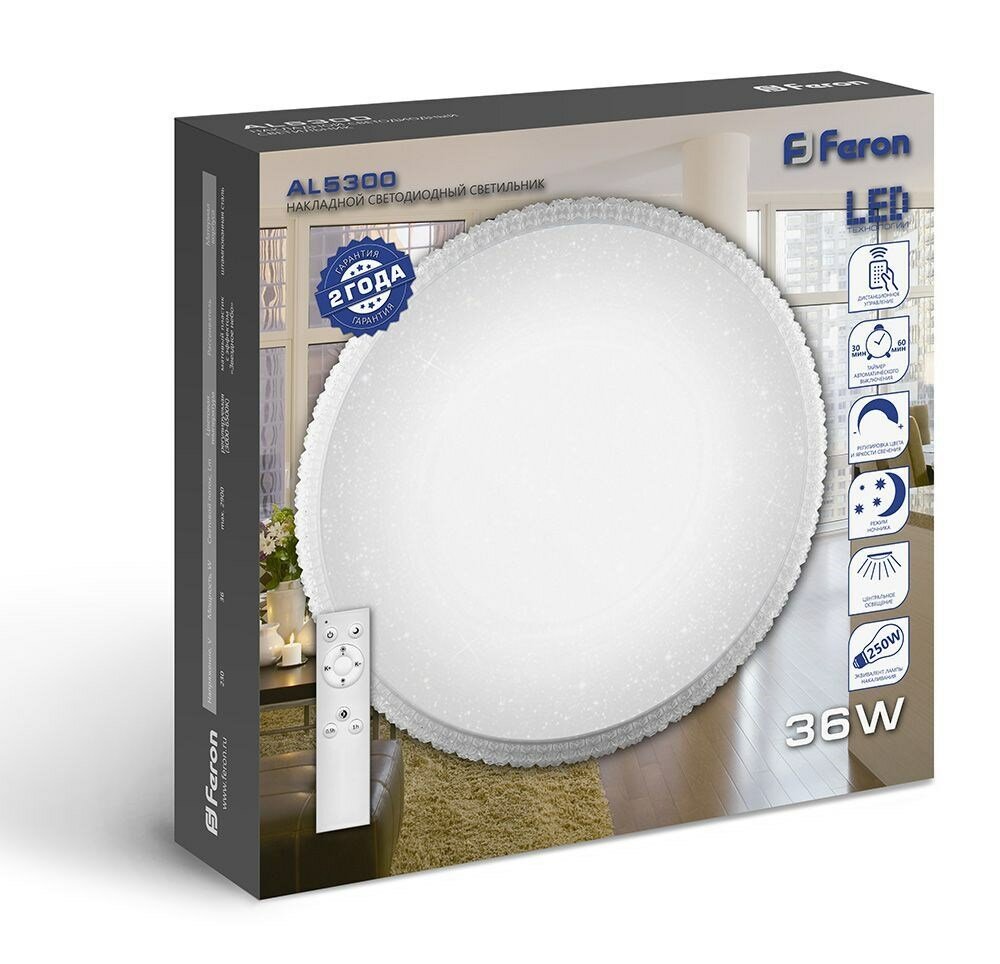 Светильник накладной светодиодный, потолочный управляемый (ДПО) FERON AL5300, 70W, 3000К-6000K интересное: