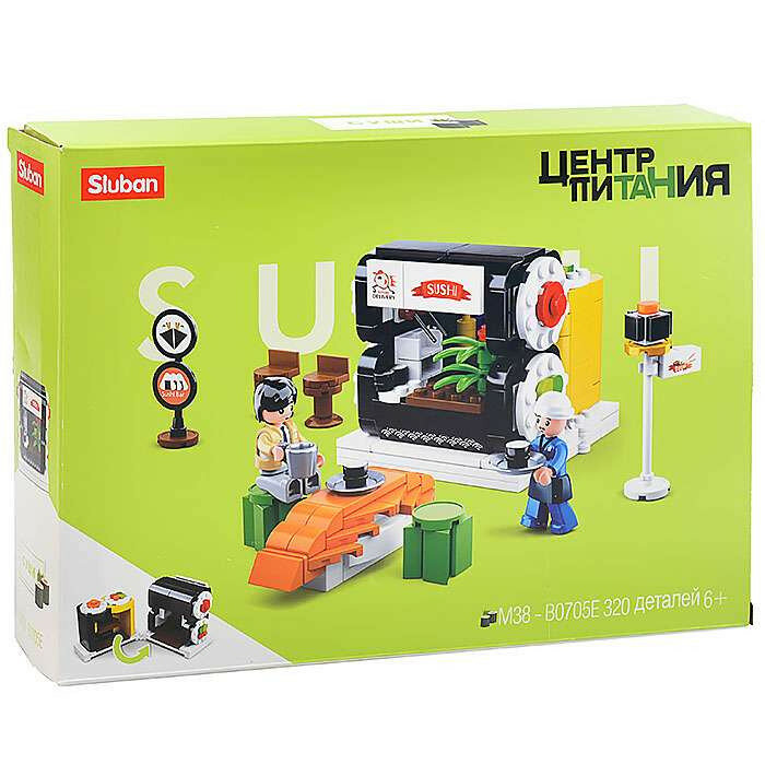 Конструктор Sluban пластмассовый/развивающий Кафе-Суши, 320 деталей, фигурки, аксессуары, M38-B0705E