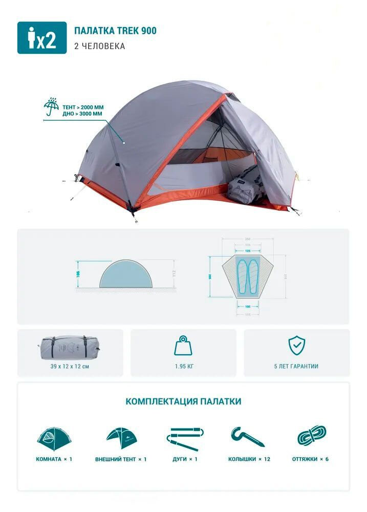 Палатка треккинговая 3-местная 3 сезона trek 900 серая FORCLAZ интересное: