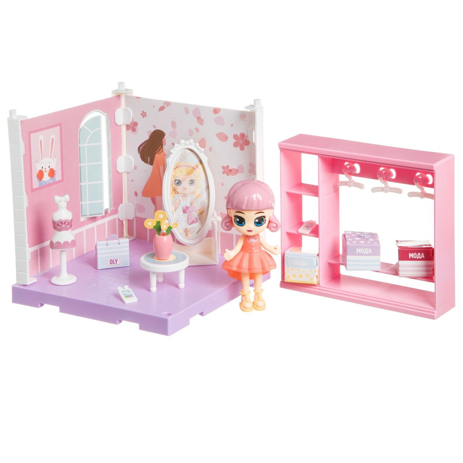 Игровой набор «Мебель» Bondibon, Кукольный уголок (Гардеробная 13,5х13,5х13,5 см) и куколка Oly 9,3 ВВ4493