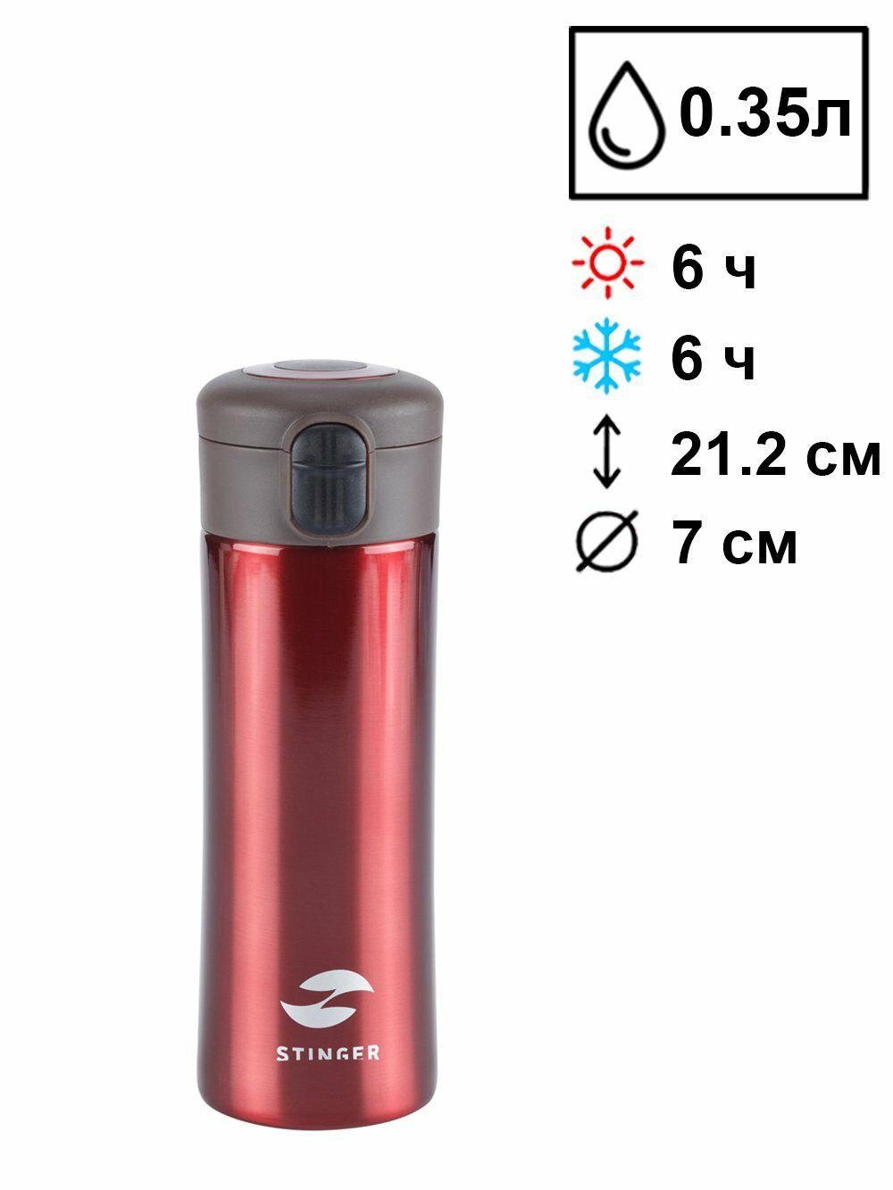 Купить Термокружка Stinger, 0,35 л, сталь/пластик, красный глянцевый, 8,4 x 7 x 21,2 см