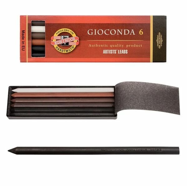 Графитовые стержни KOH-I-NOOR набор 6 штук, "Gioconda", белый + оттенки коричневого + черный (4869006005PK)