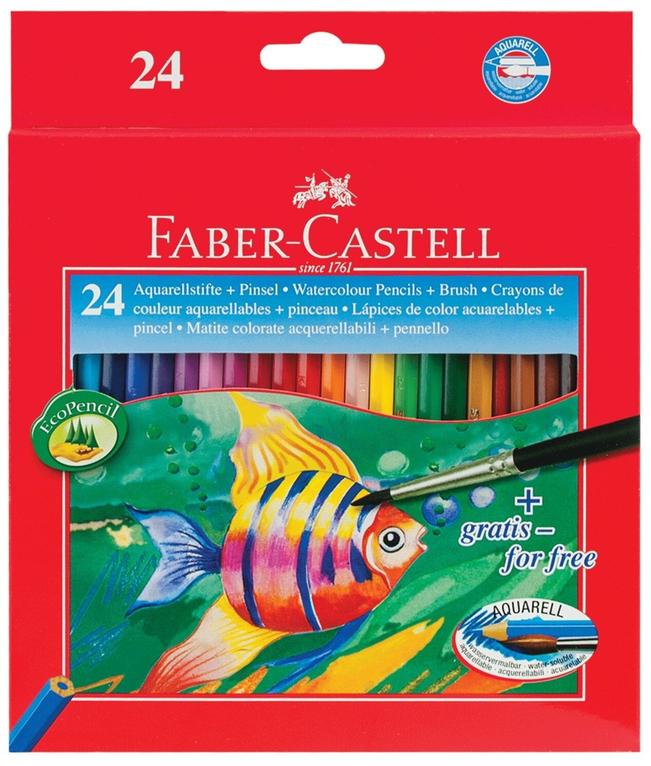 Купить Карандаши цветные акварельные FABER-CASTELL «Colour Pencils», 24 цвета + кисть, 114425