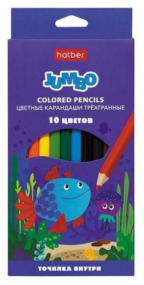 Карандаши утолщенные, трехгранный корпус Hatber JUMBO 10 цветов, с заточкой, с точилкой, в картонной коробке интересное: