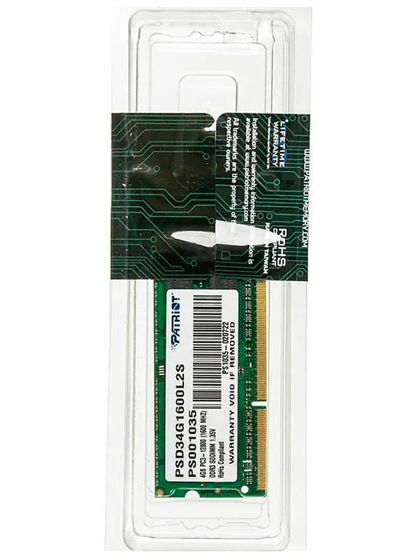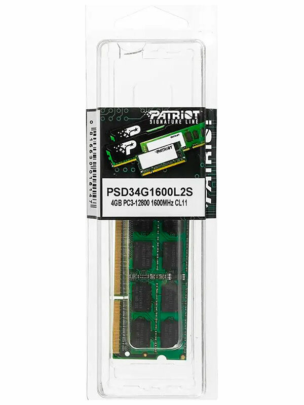 Оперативная память Patriot PSD34G1600L2S DDR3L - 4ГБ 1600, SO-DIMM, Ret