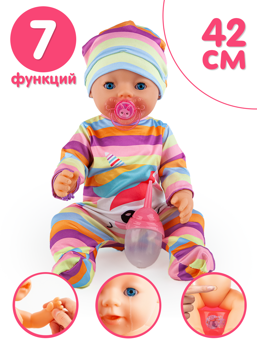 | Комплектация | бутылочка для кормления, горшок, тарелочка для кормления (1шт.), ложка для кормления (1шт.), соска, подгузник (1шт.), карточка куклы (1шт.), каша для куклы (2шт.), браслет (1шт.) |
