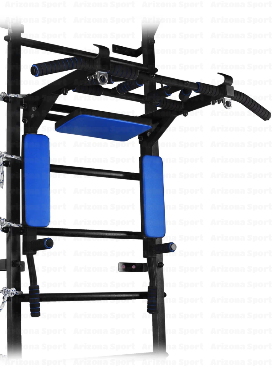 Купить Турник на шведскую стенку черный с синими подушками/ручками