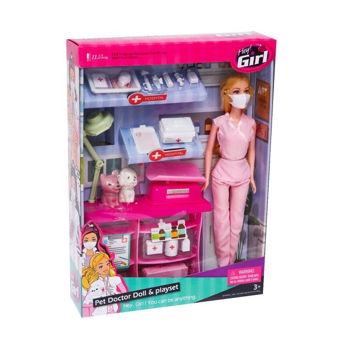 Купить Кукла-модель "Ветеринар Арина", с питомцами, мебелью и аксессуарами