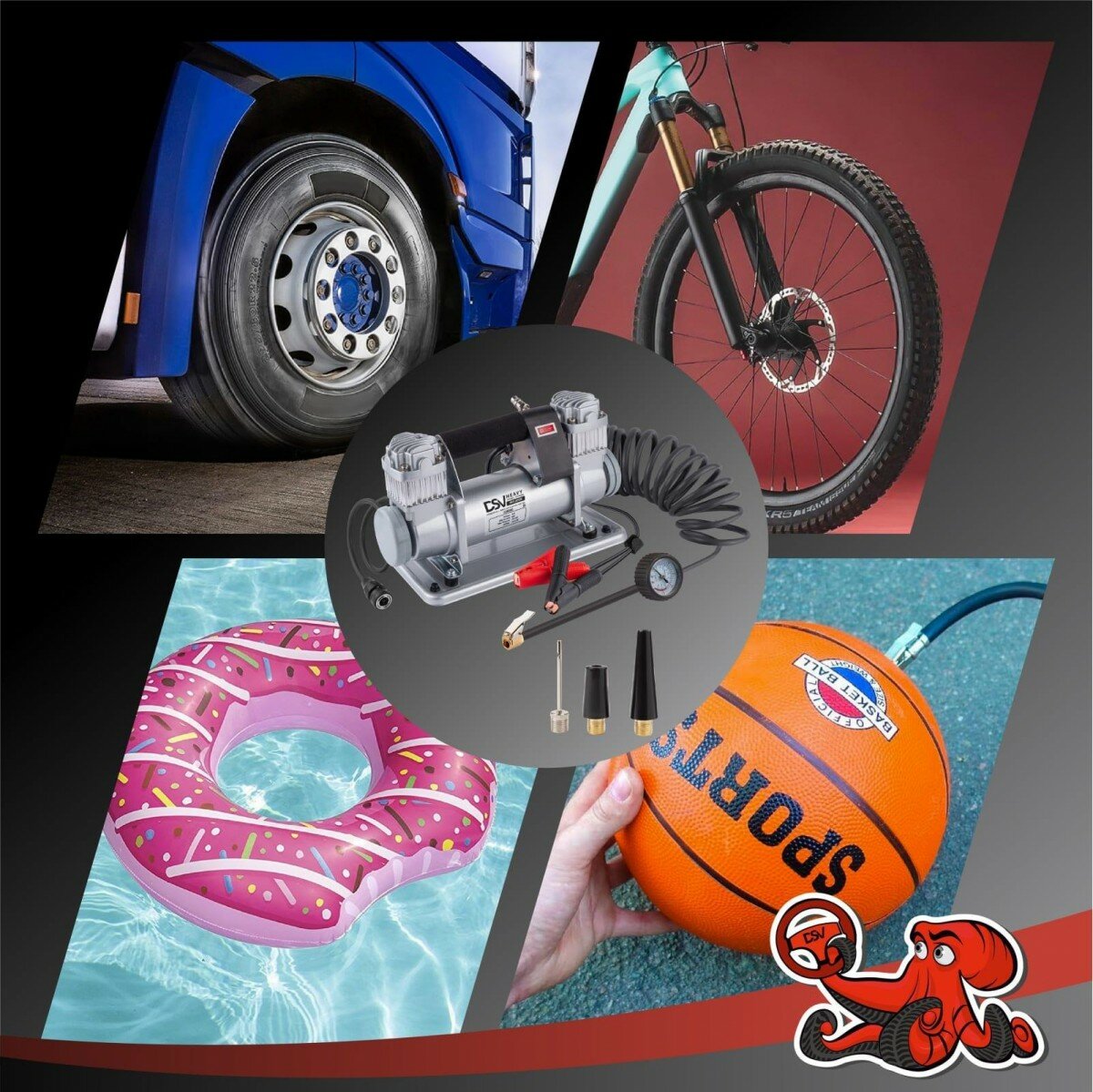 Компрессор "DSV" HEAVY 160л/мин с воздушными фильтрами, сумка, кнопка дефлятор, переходники, шт