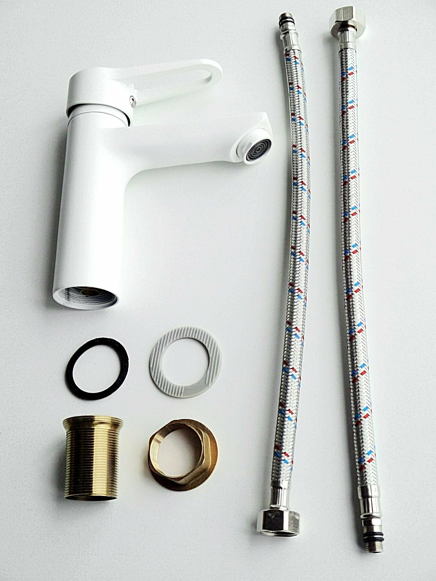 Смеситель на раковину Potato P10270-7 монолитный излив, картридж 35 мм, белый, крепление гайка интересное: