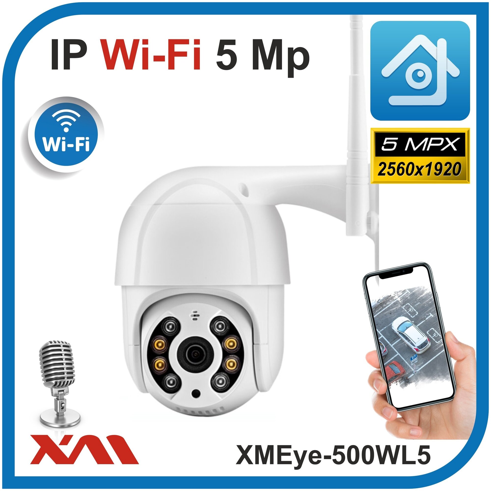 Купить Уличная поворотная камера видеонаблюдения IP Wi-Fi 5Mpx 1920p XMEye-500WL5 (3,6 мм) Цвет: Белый
