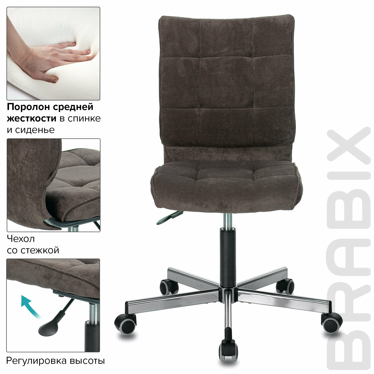 Кресло офисное Brabix "Stream MG-314", без подлокотников, пятилучие серебристое, ткань, коричневое, 532393, MG-314_532393